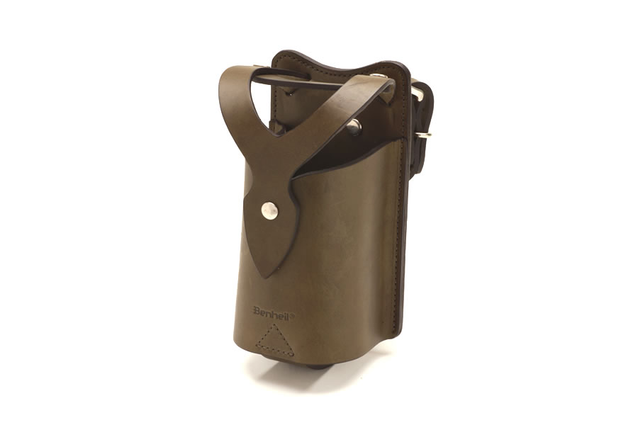 注意事項:レザーボトルホルダーの「ふた」は走行時、振動を受けた際のボトルの落下防止を目的としております。従いまして、BROMPTONやBD-1、JEDI等、ハンドルを折り畳んだ状況ではボトルの向きは逆さまになり抜け落ちてしまいますので折り畳み時は予めボトルを抜いて折り畳み下さい。