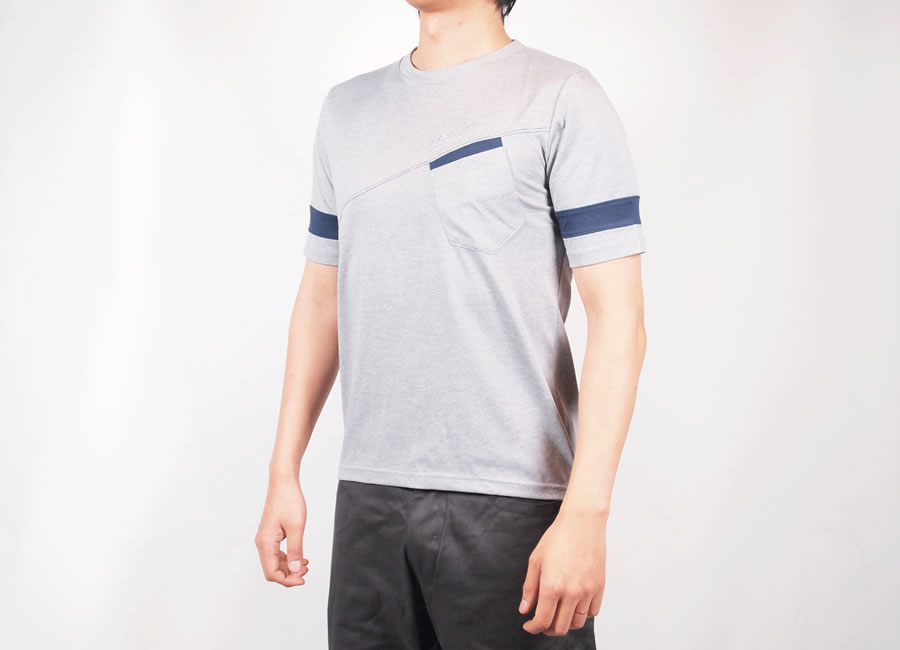 素材には優れた吸水速乾性を持つ機能性ファブリック「クールマックス UPF 25+」を採用していますので、汗などの優れた吸水性と速乾性は
